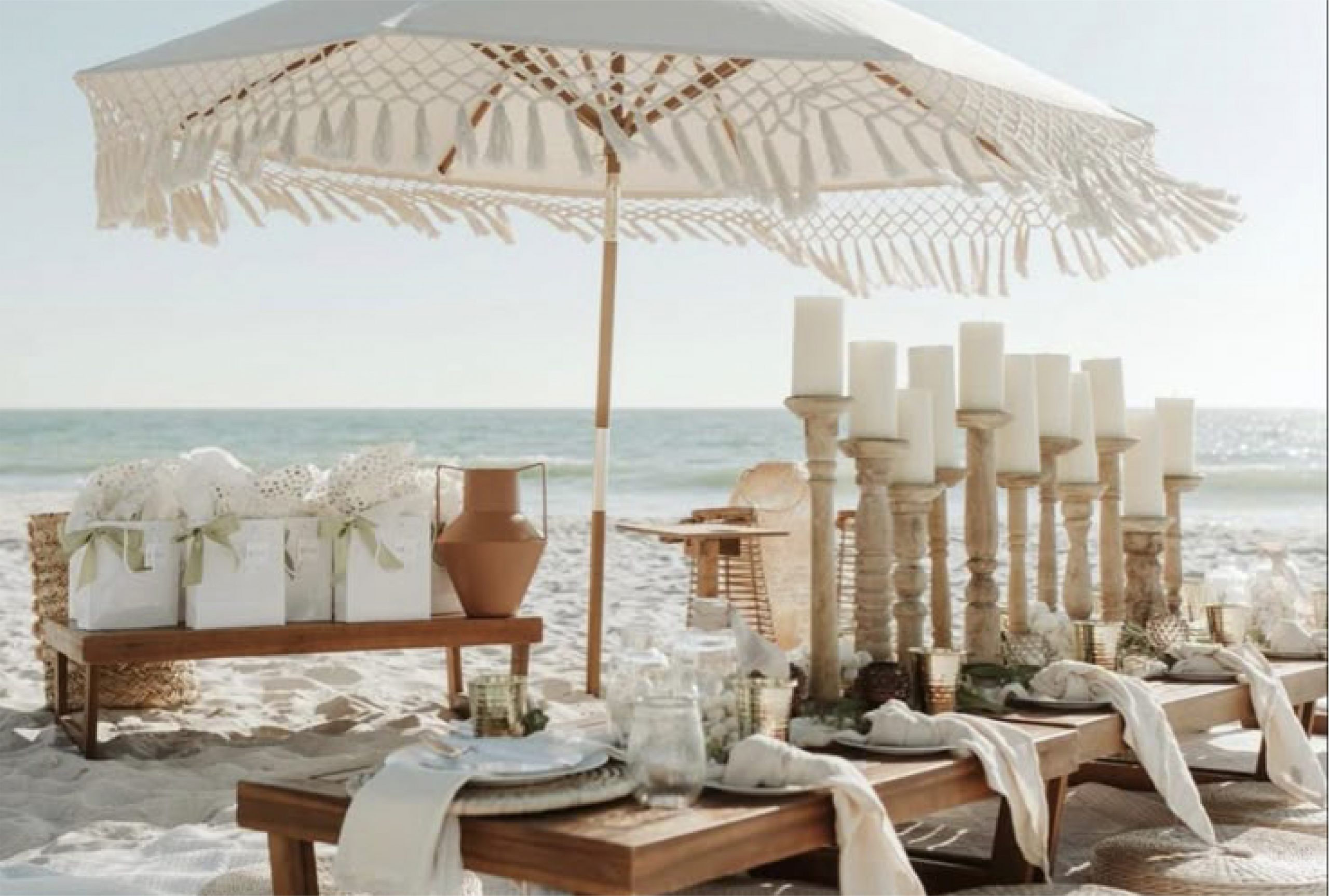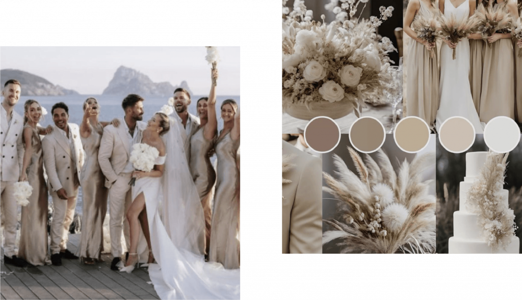 Queremos armonizar este gran día con la belleza natural de la playa y nuestra paleta de colores: beiges, dorados, nudes y tonos suaves.