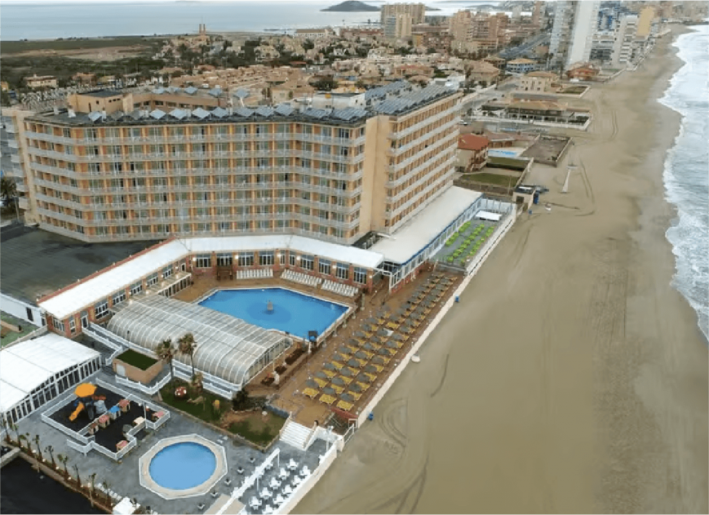 Situado en primera línea de playa del Mar Mediterráneo, en el primer kilómetro de La Manga.